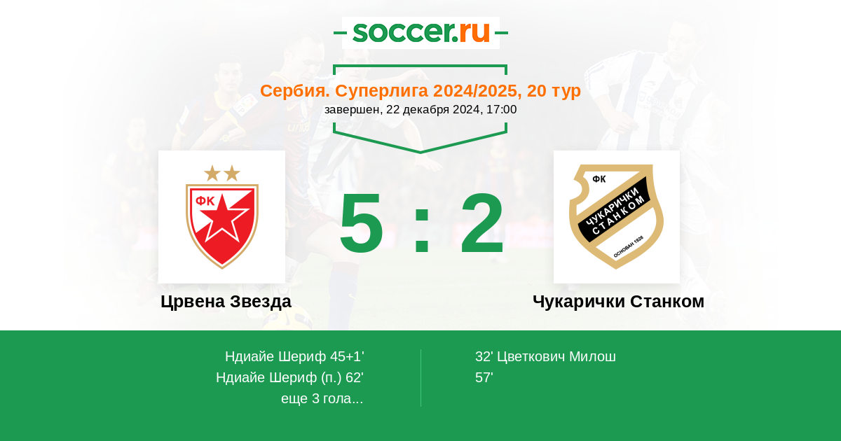 Протокол матча Црвена Звезда против Чукарички Станком
