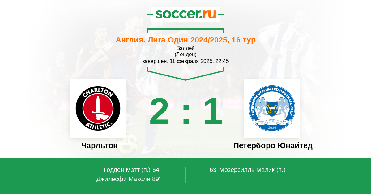Протокол матча Чарльтон против Петерборо Юнайтед