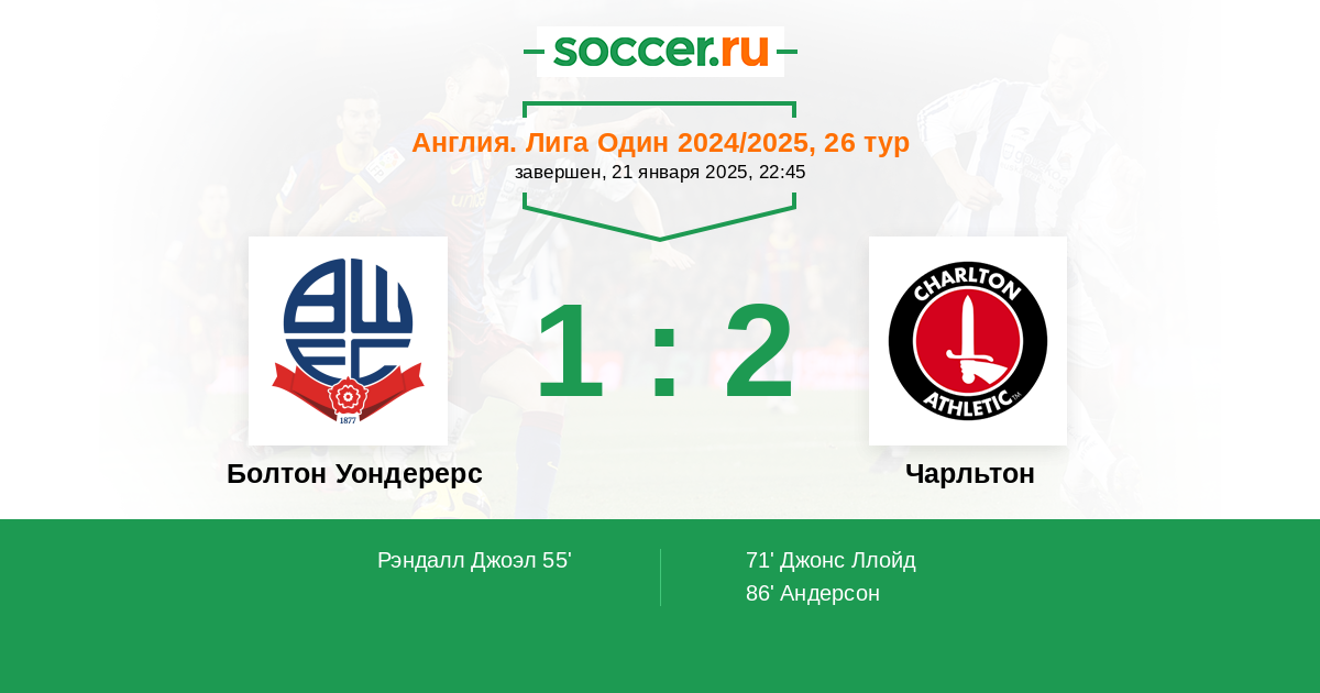 Протокол матча Болтон Уондерерс против Чарльтон