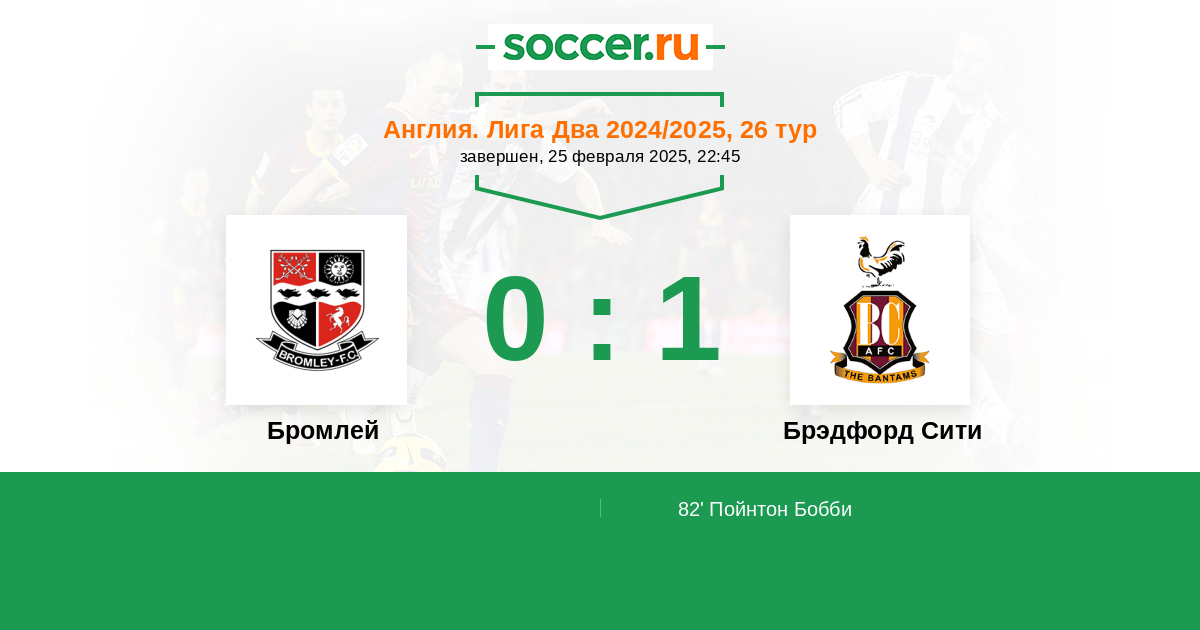 Протокол матча Бромлей против Брэдфорд Сити