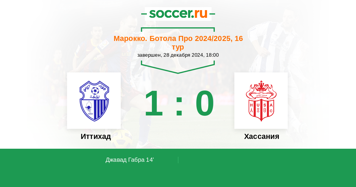 14' (1:0) Джавад Габра (19) (Эль Харрак Али (30))