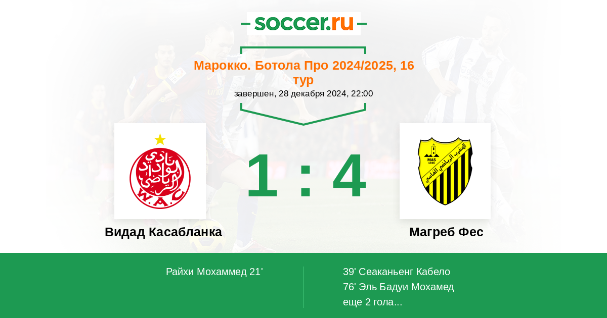Протокол матча Видад Касабланка против Магреб Фес
