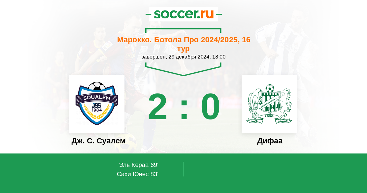 Протокол матча Дж. С. Суалем против Дифаа