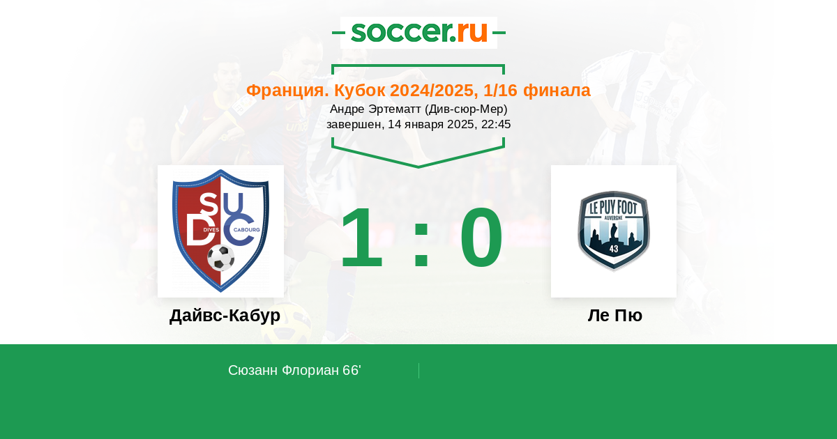 Протокол матча Дайвс-Кабур против Ле Пю