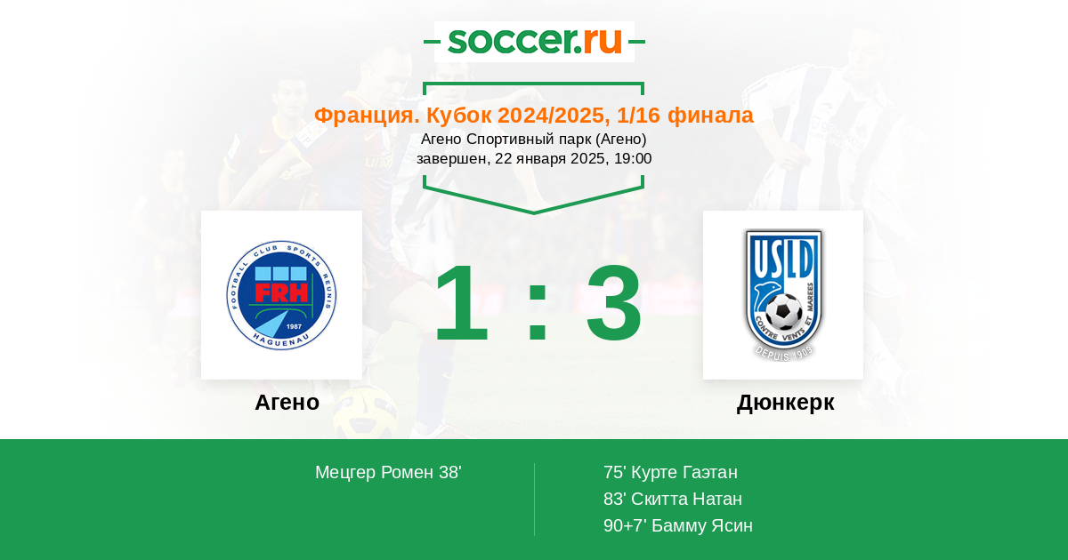 Протокол матча Агено против Дюнкерк