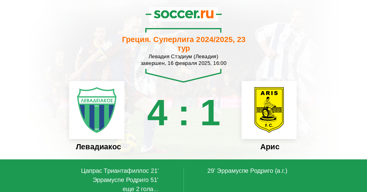 Протокол матча Левадиакос против Арис