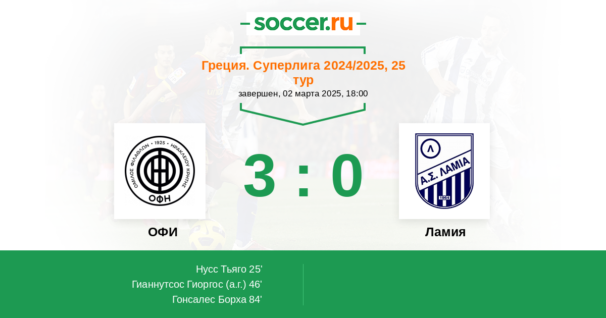 Протокол матча ОФИ против Ламия