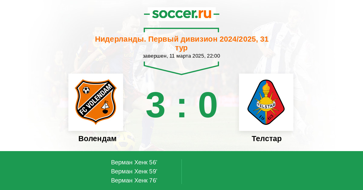 Протокол матча Волендам против Телстар