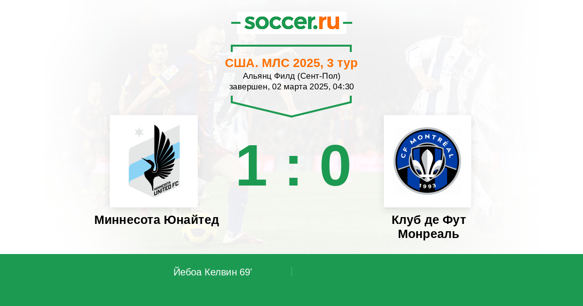 Протокол матча Миннесота Юнайтед против Клуб де Фут Монреаль