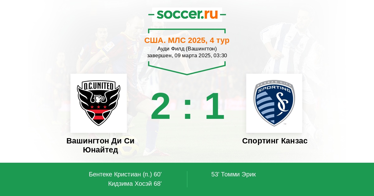Протокол матча Вашингтон Ди Си Юнайтед против Спортинг Канзас