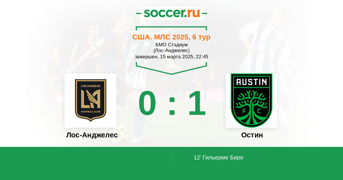 Протокол матча Лос-Анджелес против Остин