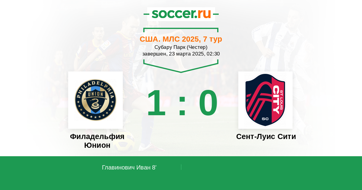 Протокол матча Филадельфия Юнион против Сент-Луис Сити