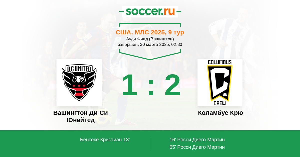 Протокол матча Вашингтон Ди Си Юнайтед против Коламбус Крю