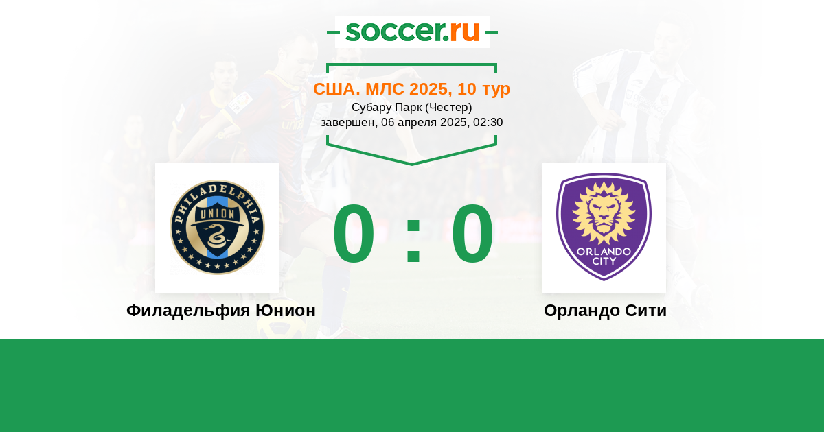 Протокол матча Филадельфия Юнион против Орландо Сити
