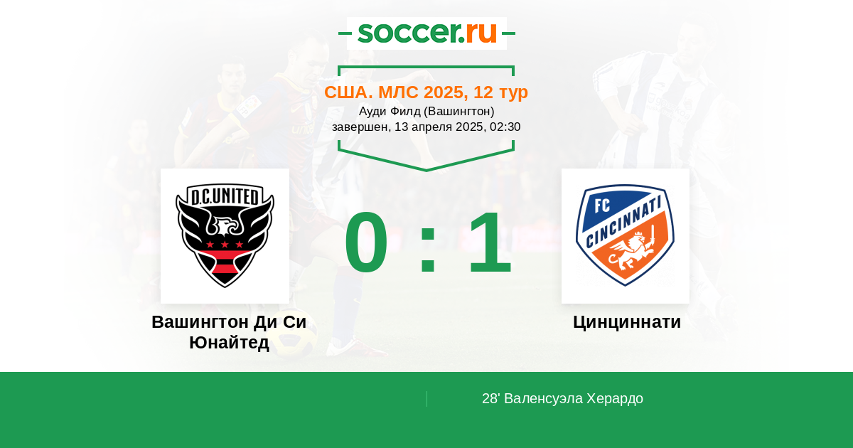 Протокол матча Вашингтон Ди Си Юнайтед против Цинциннати