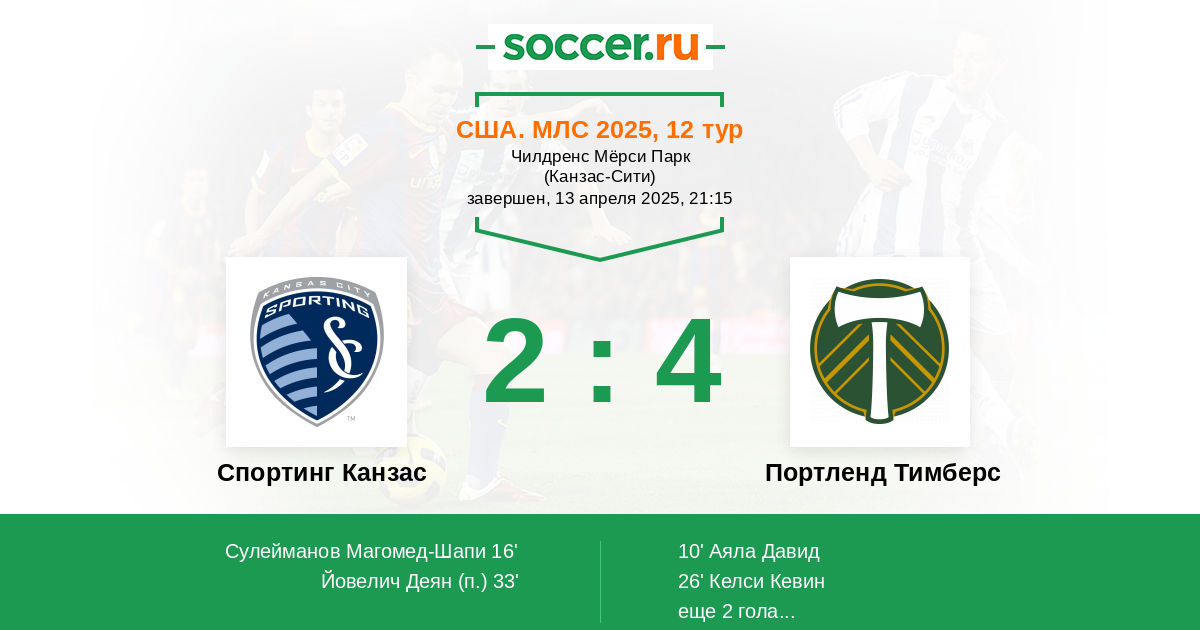 Протокол матча Спортинг Канзас против Портленд Тимберс