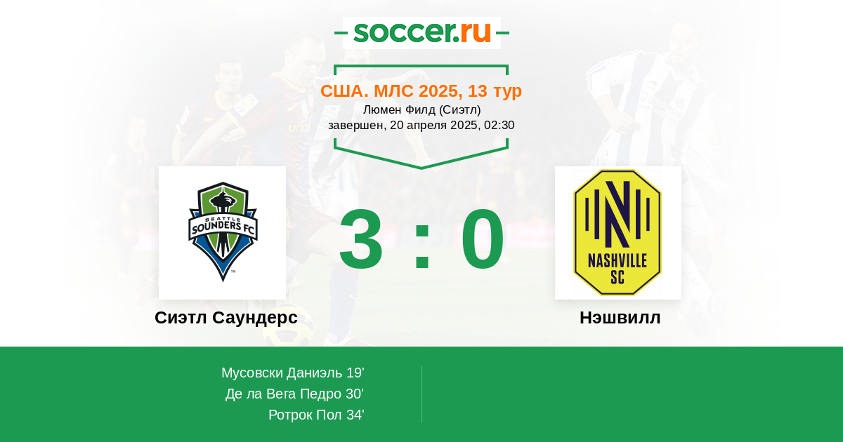 Протокол матча Сиэтл Саундерс против Нэшвилл
