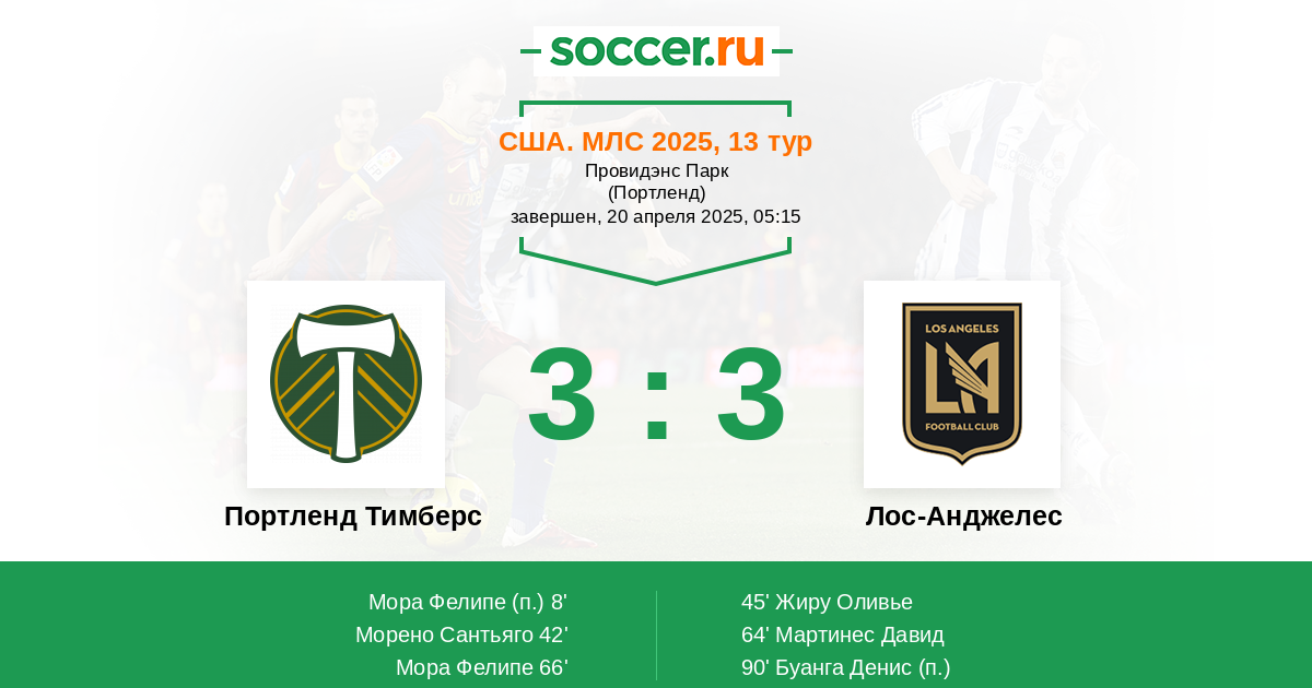 Протокол матча Портленд Тимберс против Лос-Анджелес