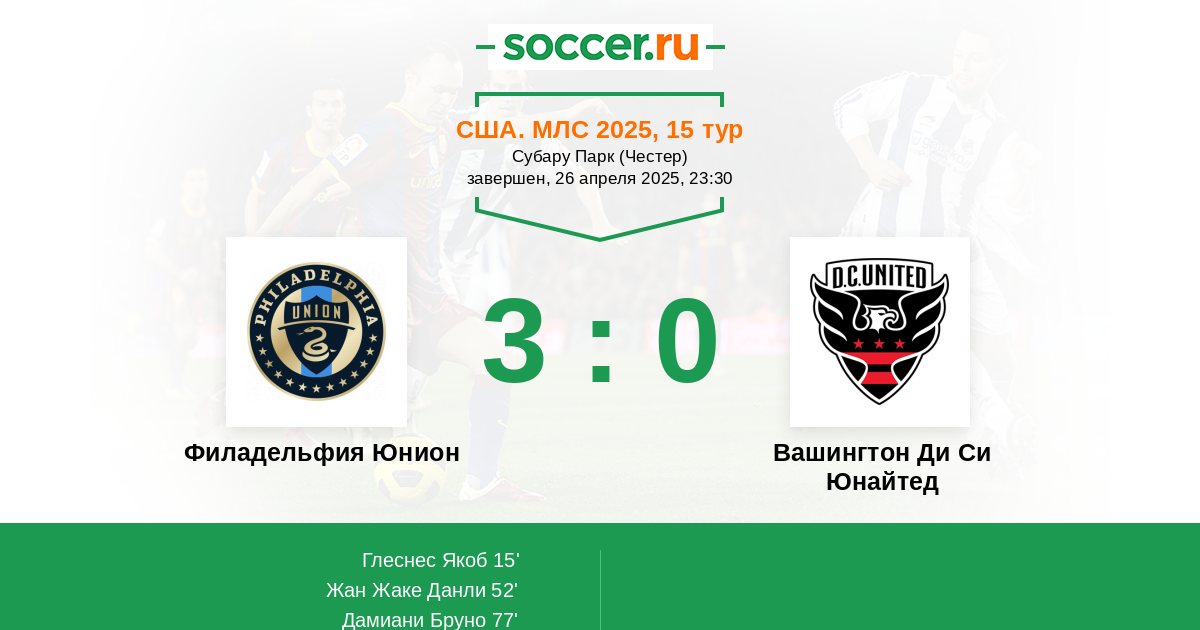 Протокол матча Филадельфия Юнион против Вашингтон Ди Си Юнайтед