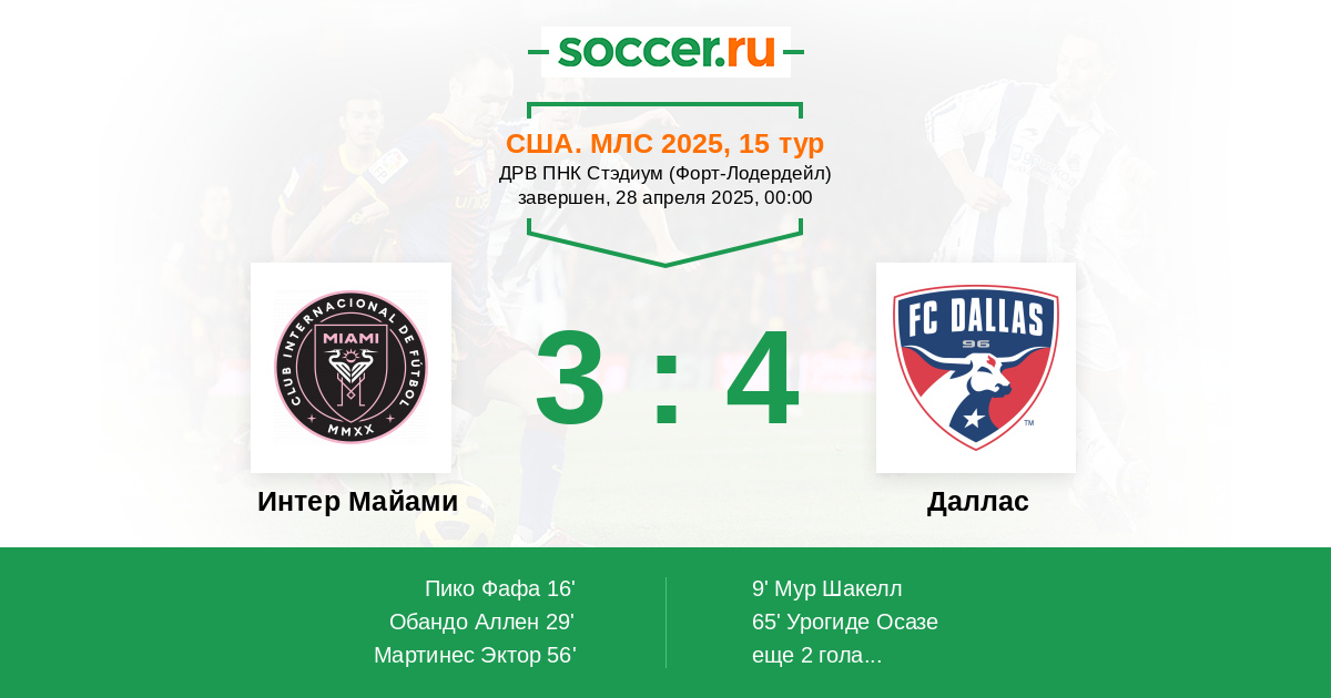 Протокол матча Интер Майами против Даллас