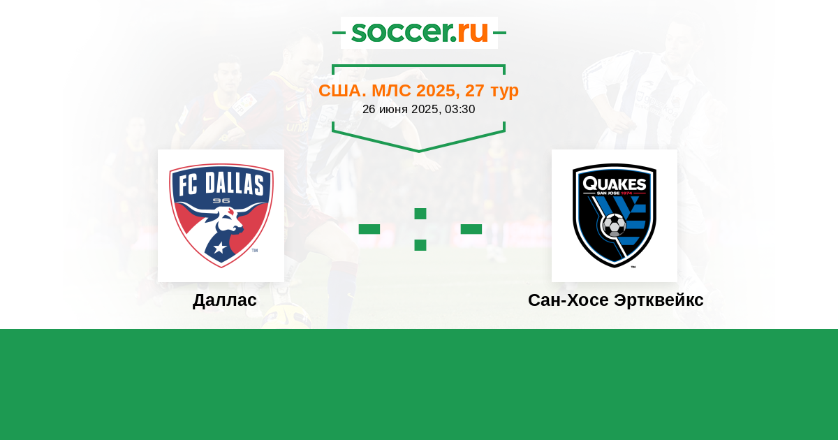 Протокол матча Даллас против Сан-Хосе Эртквейкс