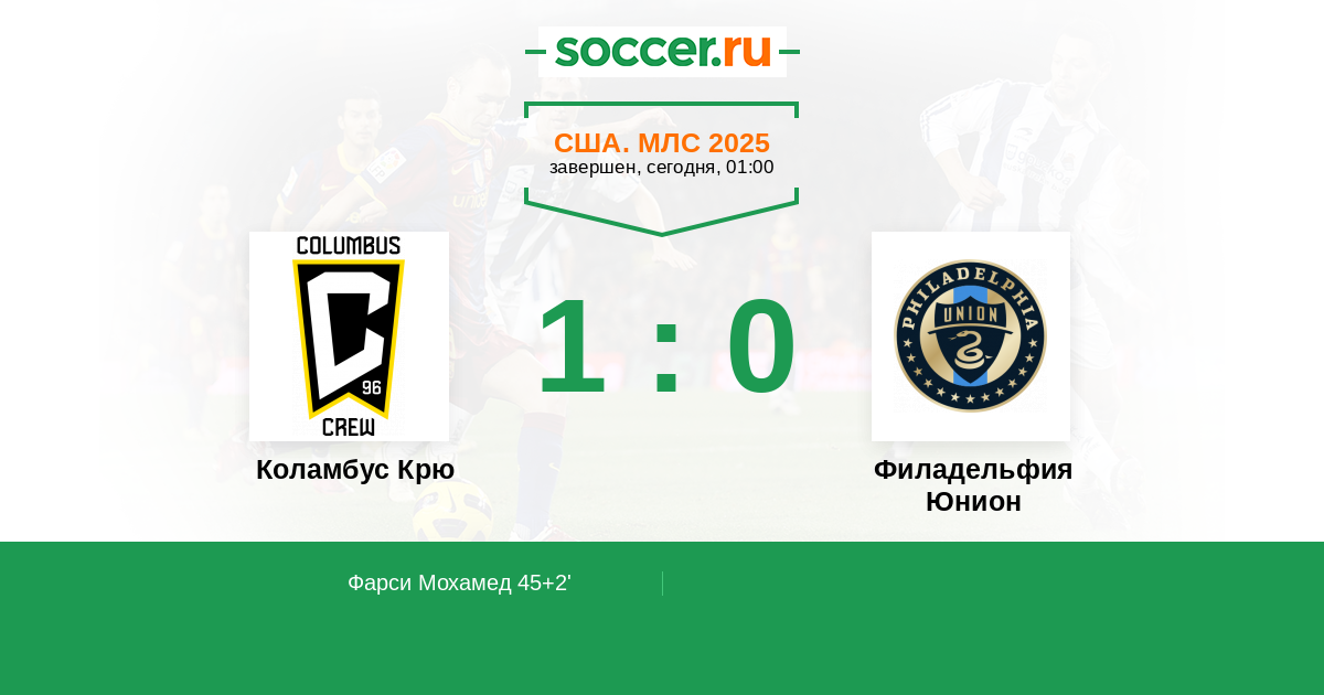 Протокол матча Коламбус Крю против Филадельфия Юнион