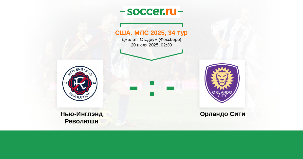 Протокол матча Нью-Инглэнд Революшн против Орландо Сити