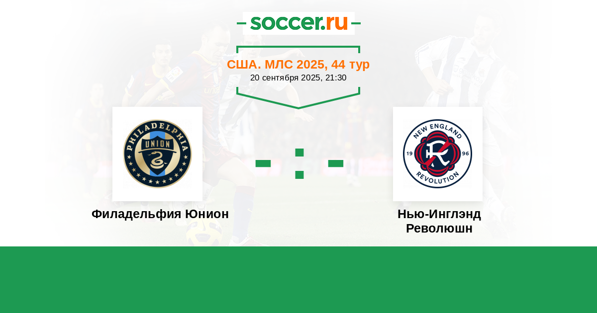 Протокол матча Филадельфия Юнион против Нью-Инглэнд Революшн