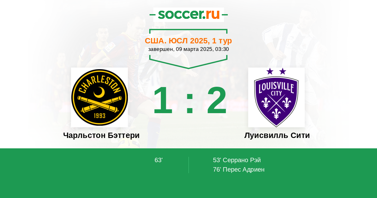 Протокол матча Чарльстон Бэттери против Луисвилль Сити