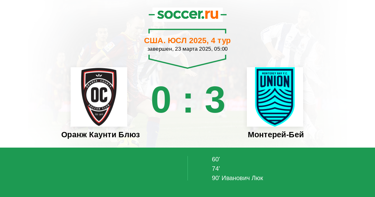 Протокол матча Оранж Каунти Блюз против Монтерей-Бей