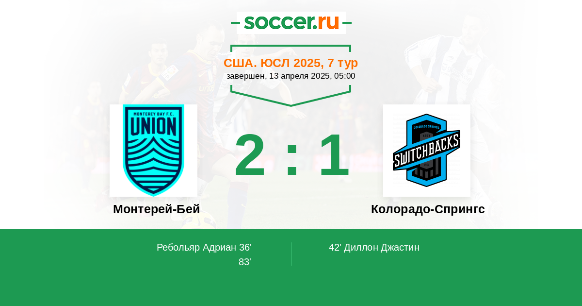 Протокол матча Монтерей-Бей против Колорадо-Спрингс