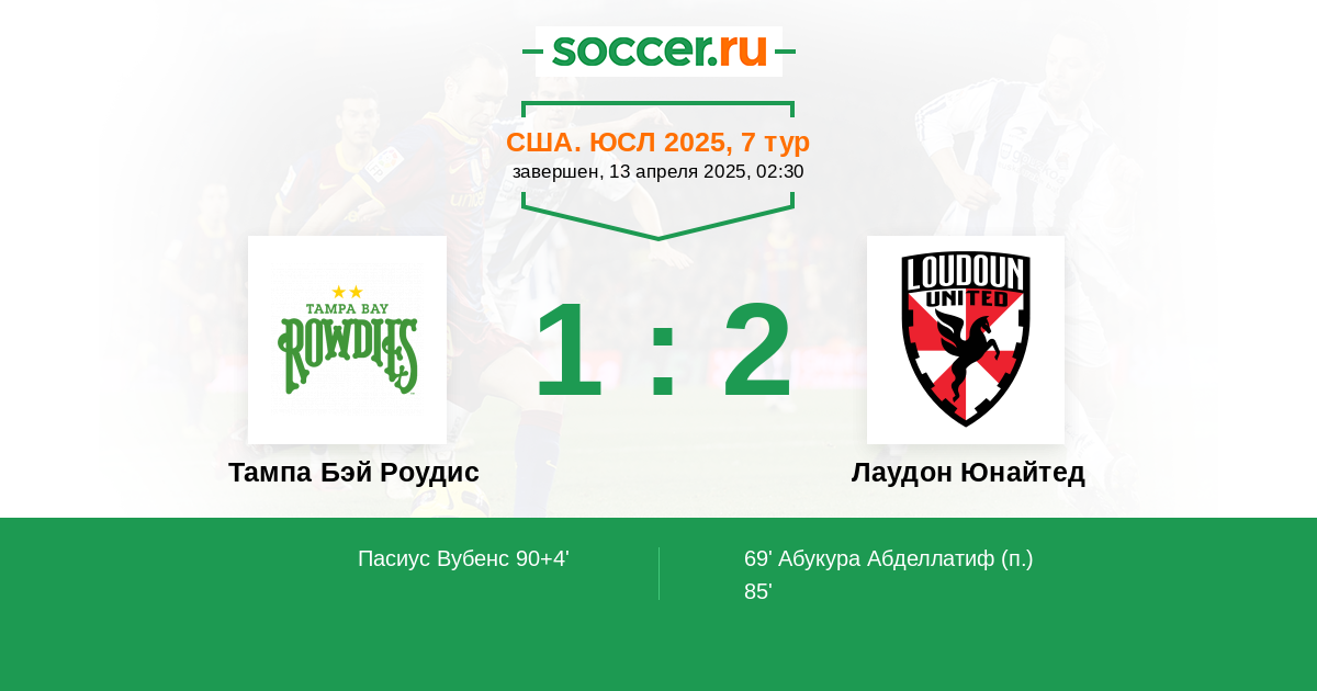 Протокол матча Тампа Бэй Роудис против Лаудон Юнайтед