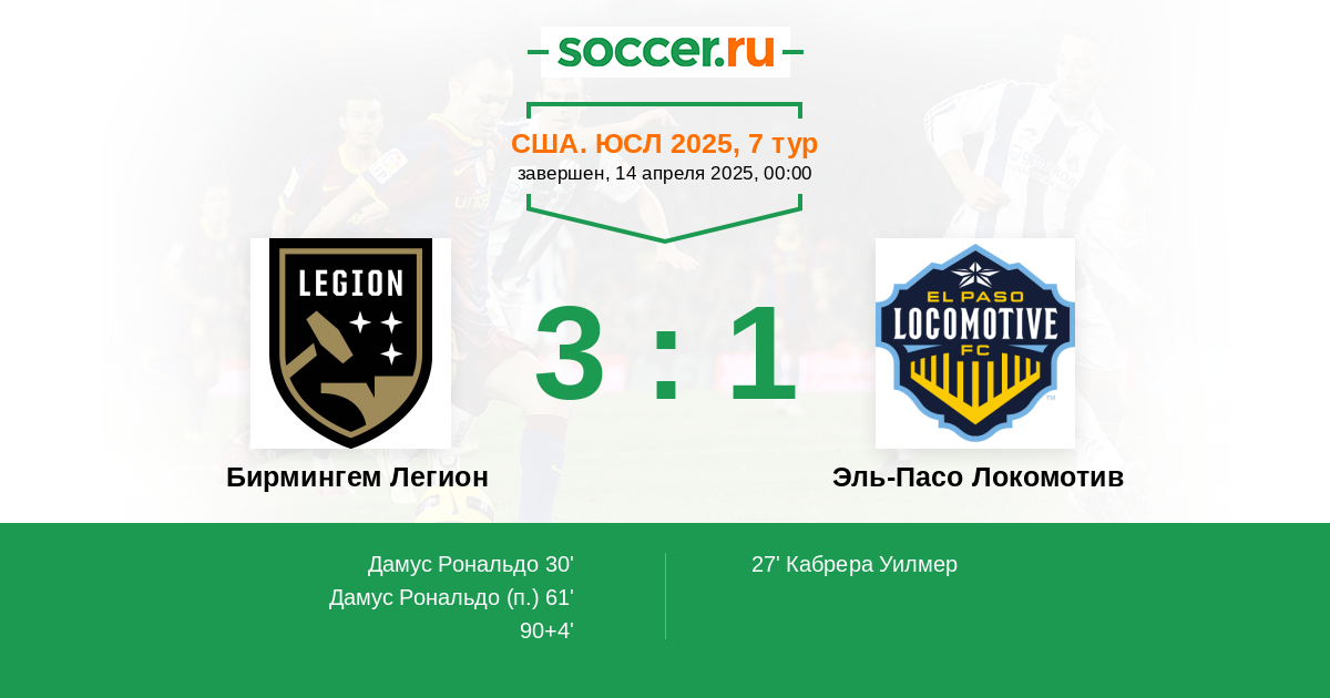 Протокол матча Бирмингем Легион против Эль-Пасо Локомотив