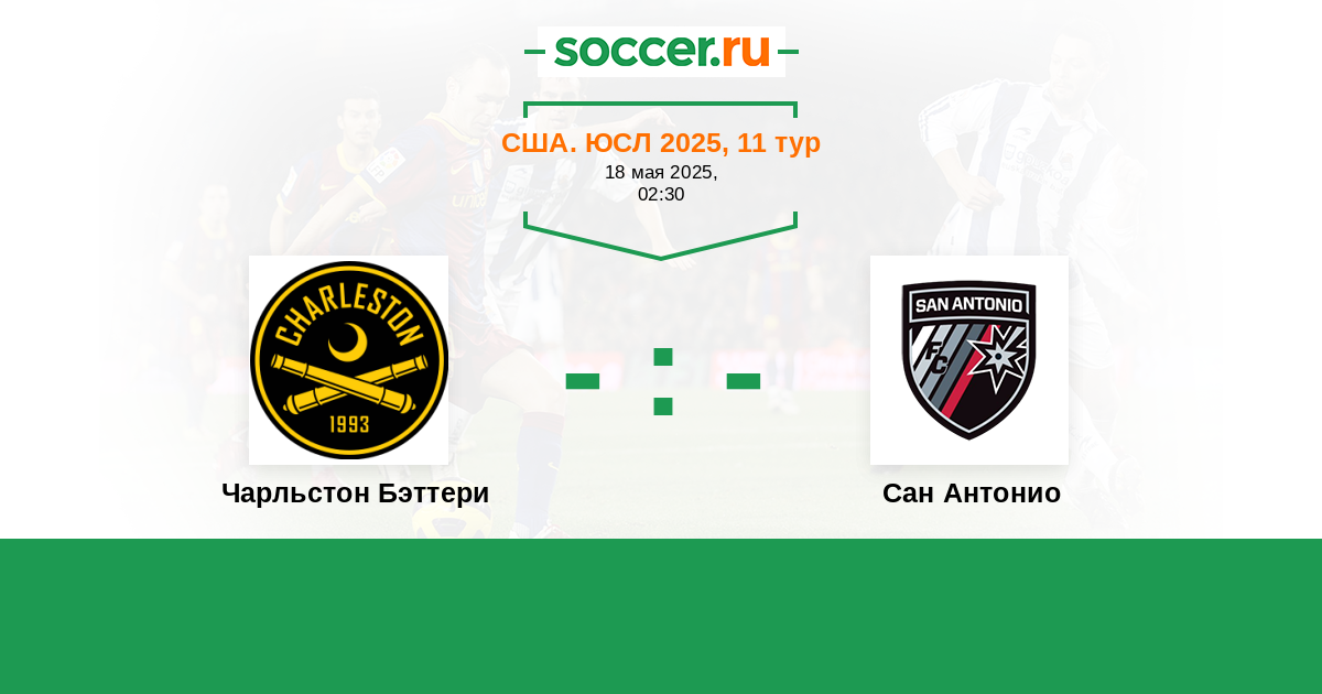 Протокол матча Чарльстон Бэттери против Сан Антонио