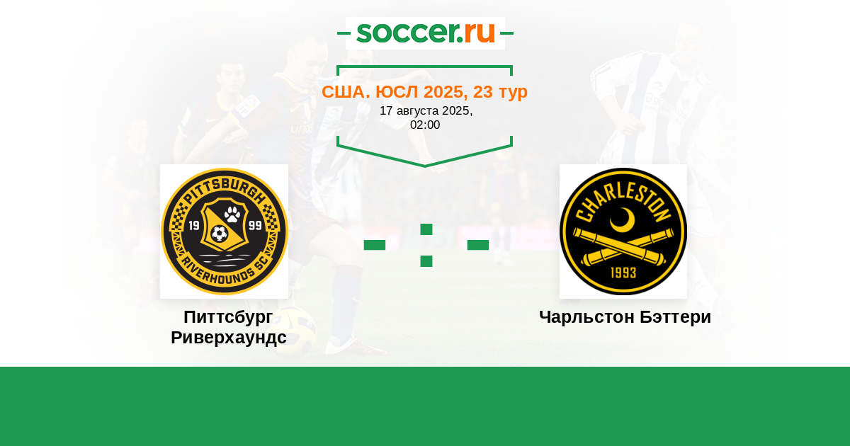 Протокол матча Питтсбург Риверхаундс против Чарльстон Бэттери