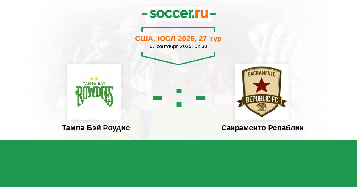 Протокол матча Тампа Бэй Роудис против Сакраменто Репаблик