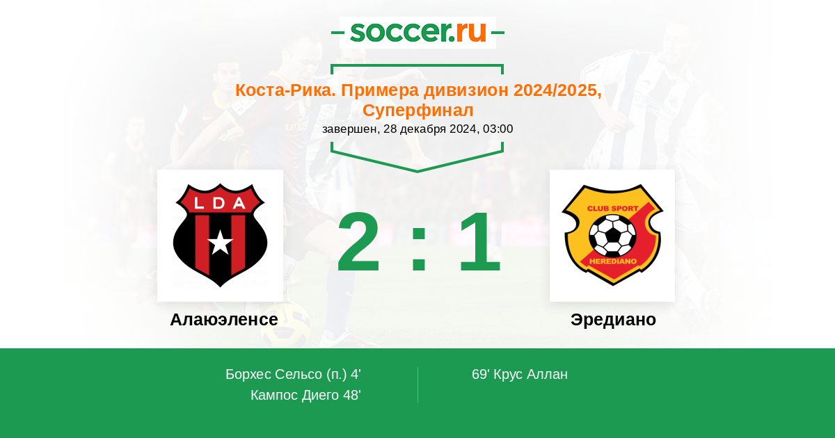 Протокол матча Алаюэленсе против Эредиано