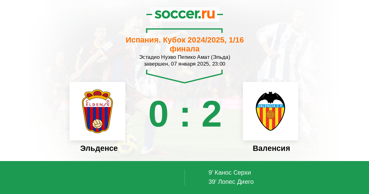 Гол39' (0:2) Лопес Диего (16) (Канос Серхи (7))