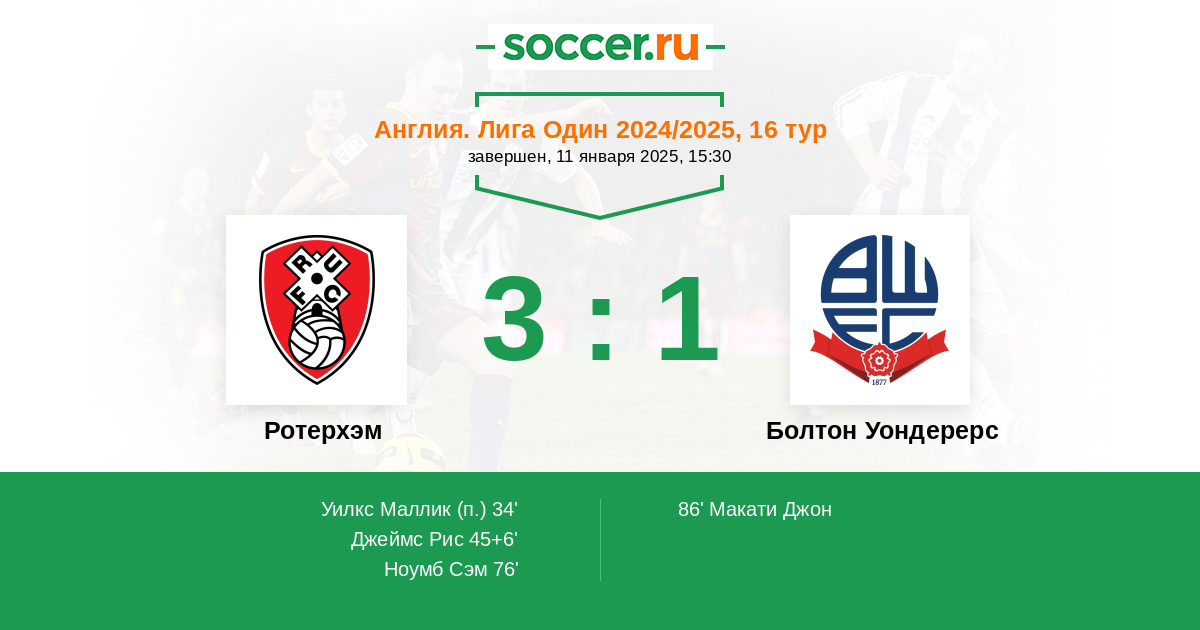 Протокол матча Ротерхэм против Болтон Уондерерс