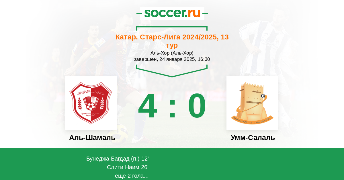 Протокол матча Аль-Шамаль против Умм-Салаль