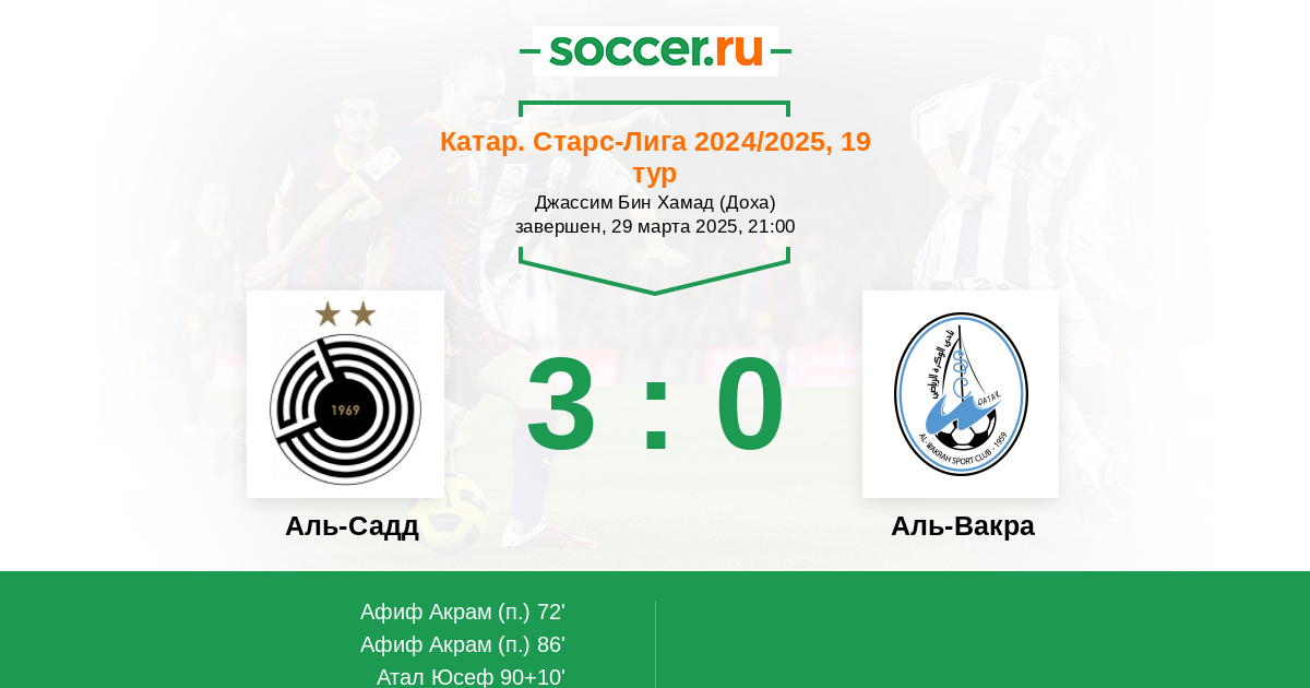 Протокол матча Аль-Садд против Аль-Вакра