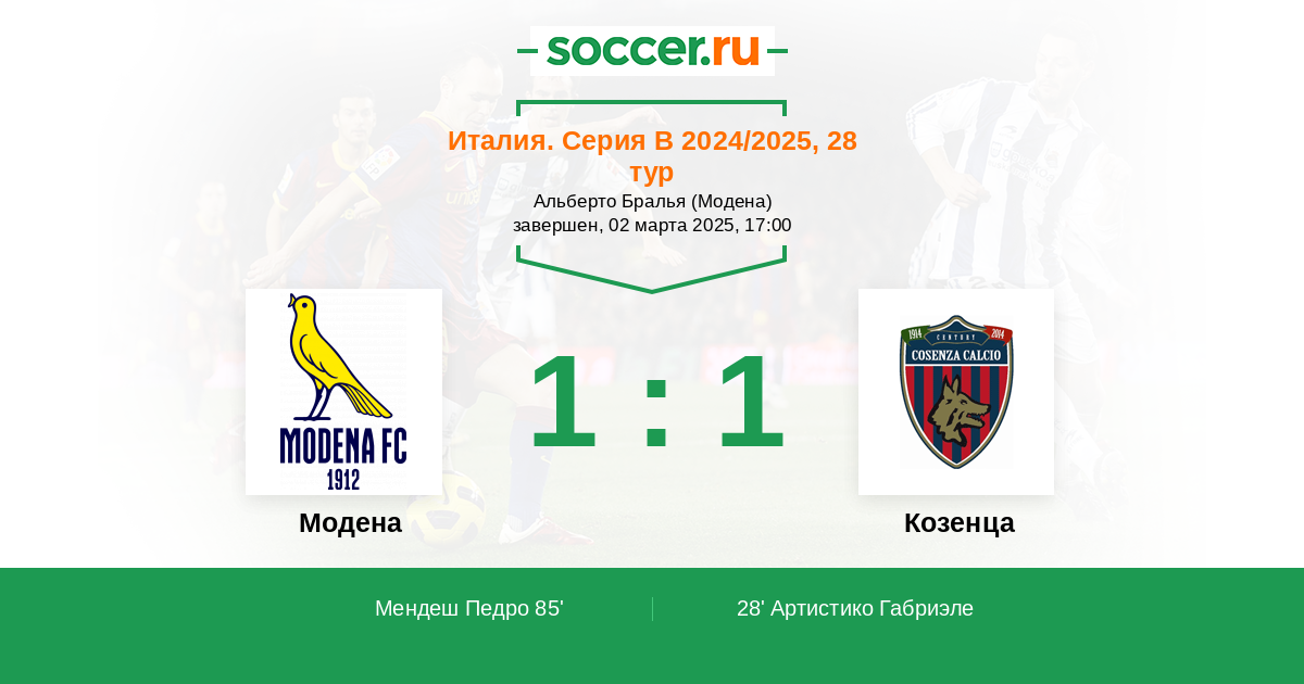 Протокол матча Модена против Козенца