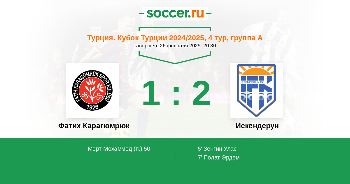 Протокол матча Фатих Карагюмрюк против Искендерун