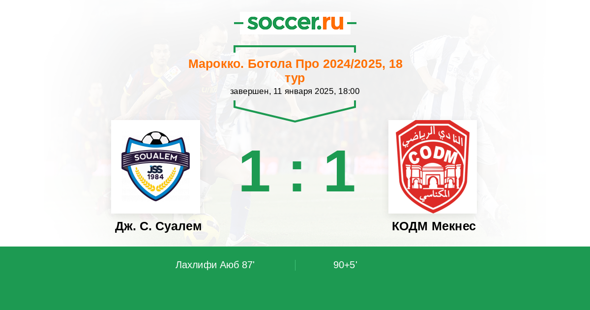 Протокол матча Дж. С. Суалем против КОДМ Мекнес