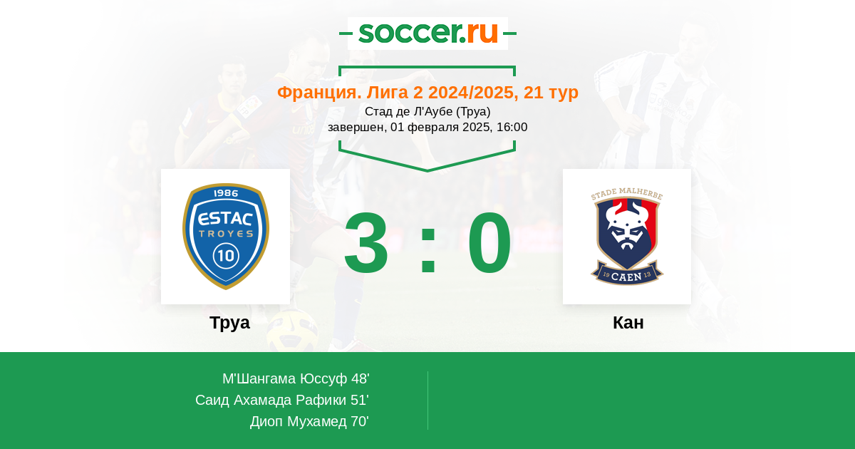 Протокол матча Труа против Кан