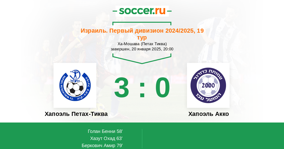Протокол матча Хапоэль Петах-Тиква против Хапоэль Акко