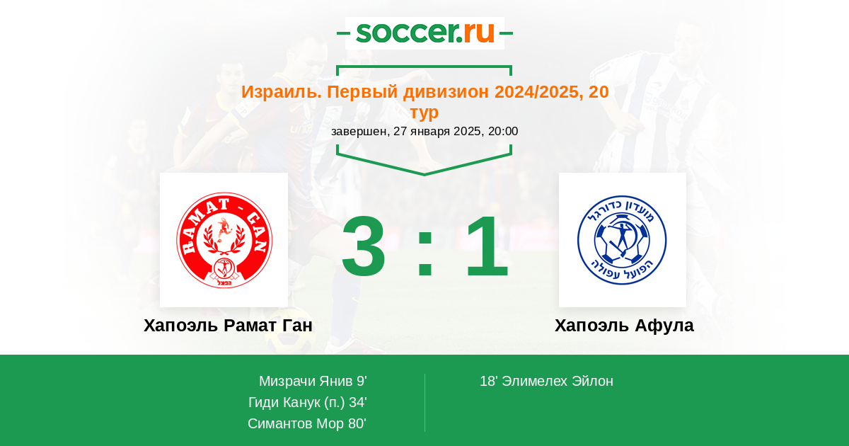 Протокол матча Хапоэль Рамат Ган против Хапоэль Афула