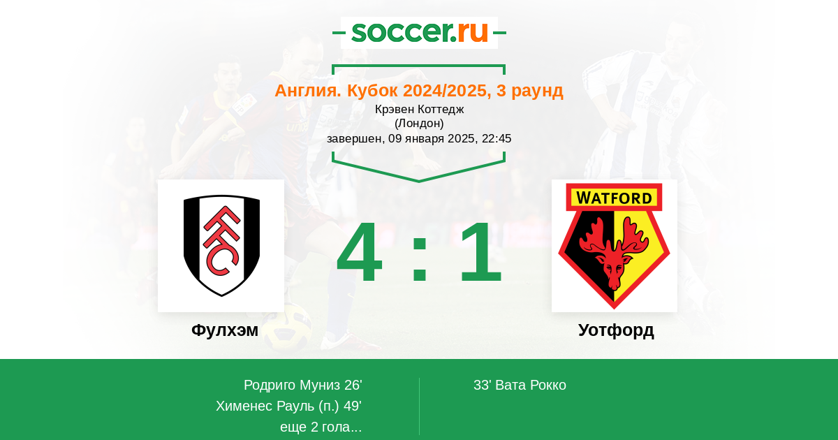 Протокол матча Фулхэм против Уотфорд