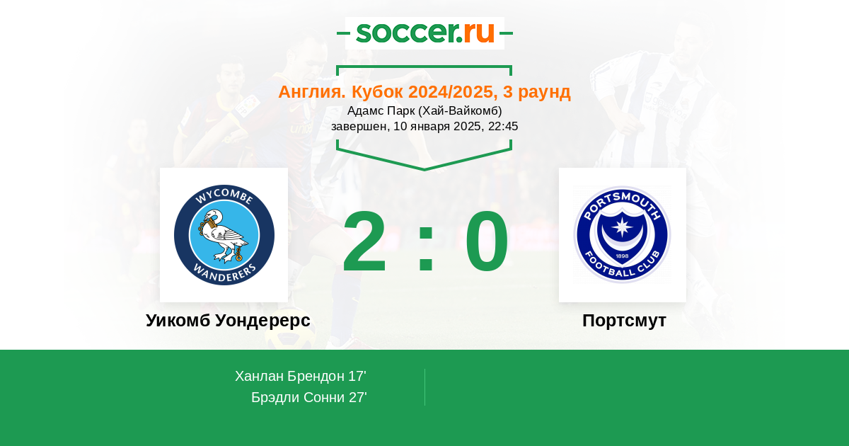Протокол матча Уикомб Уондерерс против Портсмут