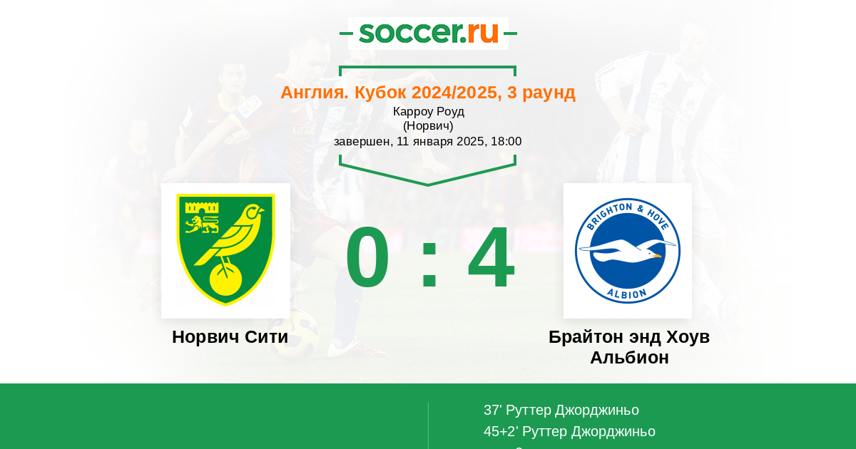 Протокол матча Норвич Сити против Брайтон энд Хоув Альбион
